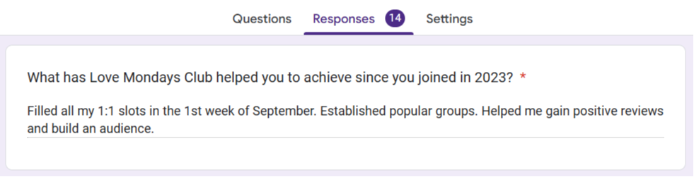 "I've learnt so much about marketing and creating efficient systems and have got a mailing list of over 130 and a FB group of over 200, I've done lead magnets, workshops, automations, built a website!